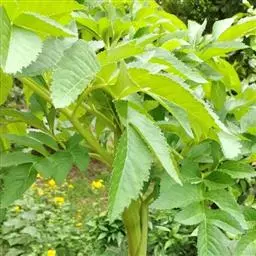 明日叶,伞形科当归属多年生大草本。茎叶内含黄色液汁,茎直立,多分枝;基生叶丛生,具长柄,基部扩大抱茎,…