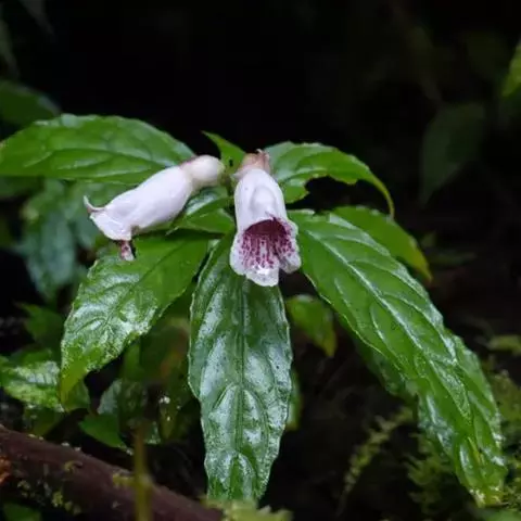 多年生草本。茎上升,细弱,通常不分枝,具3-5节,肉质,无毛,散生紫揭色斑点。叶对生,叶片稍肉质,干时草质,倒卵状披针形,卵状披针形或椭圆状披针形,多少偏斜,长3-15厘米,宽1.2-5厘米,全缘或具疏的波状浅钝齿,基部楔形或狭楔形,通常不对称,上面深绿色,疏生短柔毛,背面绿白色或带紫色,无毛;蠕虫状石细胞少量嵌生于维管束附近的基本组织中:侧脉每侧4-6条;叶柄长2-4厘米,纤细,无毛。