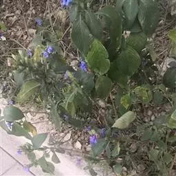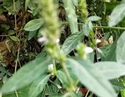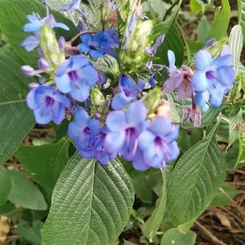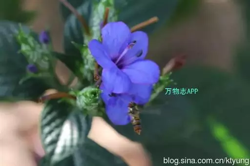 灌木,高可达2米,枝4棱形,无毛或近无毛。叶对生,具叶柄,长1-3厘米;叶片通常卵形,有时椭圆形,长9-20厘米,宽4-8厘米,顶端渐尖或长渐尖,基部圆或宽楔形并下延,两面无毛或近无毛,全缘或有不明显的钝齿,侧脉每边8-10条,连同中肋在叶两面凸起,背面明显。穗状花序顶生和腋生,长3-10厘米,具覆瓦状排列的苞片;苞片大,叶状,白绿色,倒卵形或椭圆形,长1-25厘米,顶端渐尖或短尾尖,具绿色羽状脉,无缘毛;小苞片线状披针形,短于花萼;花萼白色,长6-8毫米;花冠蓝色或白色,高脚碟状,花冠管长约3厘米,外被微柔毛,冠檐裂片5,通常倒卵形,近相等,长约7毫米;雄蕊2枚,稍外露。蒴果长1-1.6厘米,有种子4粒。