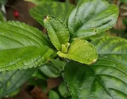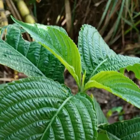 叶皱缩,完整叶片椭圆形至矩圆形,长5-10cm,先端尖锐至短渐尖,基部楔形,下延,边缘微波状或具微圆齿;叶脉明显,小支脉排列整齐几成平行状。气微,味淡。