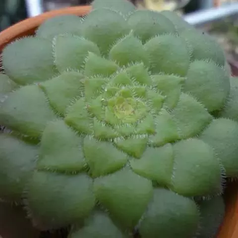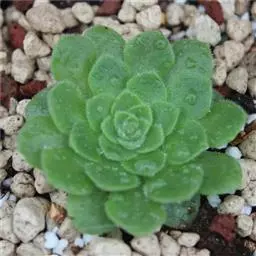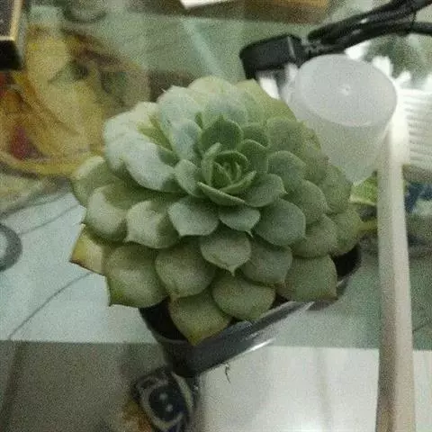 明镜为多年生肉质植物,植株低矮扁平,叶片草绿色,叶边缘生有白色绒毛,叶片无叶柄,呈匙形。 它的叶片比较薄,一点不厚实,叶片上有一层绒毛,叶片呈平板型排列,不会向上聚拢生长,只能不断增大直径。