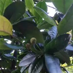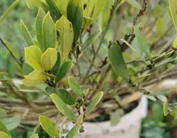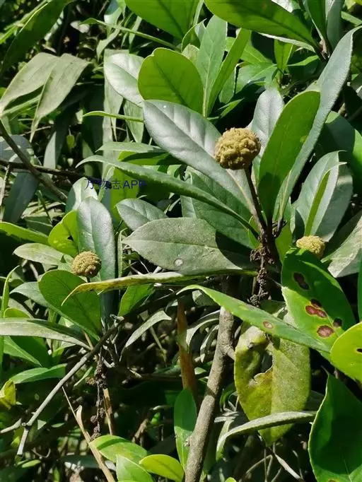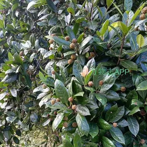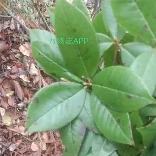 叶革质或厚革质,二年生,倒卵状矩圆形,长7-13厘米,宽3-4.5厘米;先端短急尖,有时略钝,基部楔形;上面深绿色,干后稍发亮;下面浅绿色,无毛;侧脉约7对,在上下两面均突起,网状小脉在上面很明显,在下面稍突起,边缘有钝锯齿,叶柄长约1厘米,无毛,稍粗壮;托叶细小,早落。