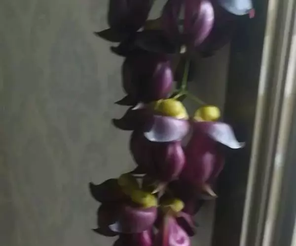 果木质,带形,长30-45厘米,宽3.5-4.5厘米,厚1-1.5厘米,近念珠状,密被红褐色短绒毛,幼果常被红褐色脱落的刚毛,沿背、腹缝线各具宽3-5毫米的木质狭翅,有纵沟,内部在种子之间有木质隔膜,厚达4毫米;种子5-13颗,深紫黑色,近肾形,长约2.8厘米,宽约2厘米,厚8-10毫米,常有光泽,种脐为种子周长的1/2-3/4。花期4-6月,果期6-11月。
