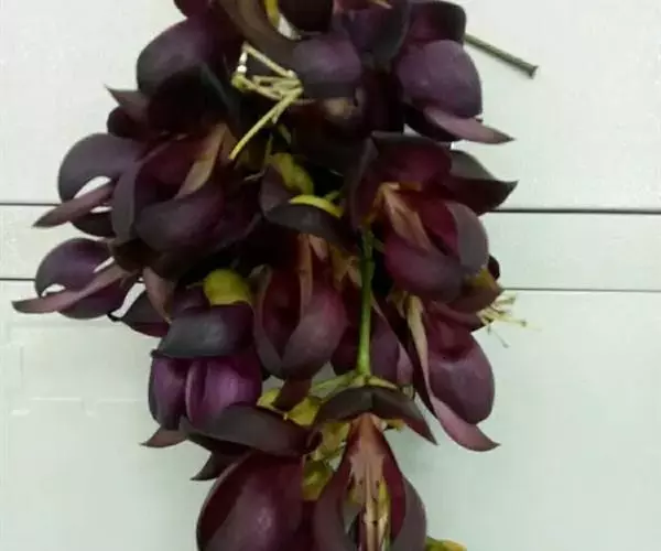 总状花序生于老枝上或生于叶腋,长20-38厘米,有花20-30朵,常呈束状;苞片卵形,长约2毫米,早落;花梗长1-1.5厘米,具稀疏或密生的暗褐色伏贴毛;小苞片早落;花萼内面与外面密被浅褐色伏贴毛,外面被红褐色脱落的粗刺毛,萼筒宽杯形,长1-1.5厘米,宽1.5-2.5厘米,2侧齿三角形,长5-8毫米,最下齿狭三角形,长5-15毫米,上唇宽三角形,常与侧齿等长;花冠白色或带绿白色,旗瓣长3.5-4.5厘米,先端圆,基部耳长4毫米,翼瓣长6.2-7.1厘米,先端圆,瓣柄长约8毫米,密被浅褐色短毛,耳长约5毫米,龙骨瓣长7.5-8.7厘米,基部瓣柄长7-8毫米,耳长不过1毫米,密被褐色短毛;雄蕊管长5.5-6.5厘米;子房密被直立暗褐色短毛。