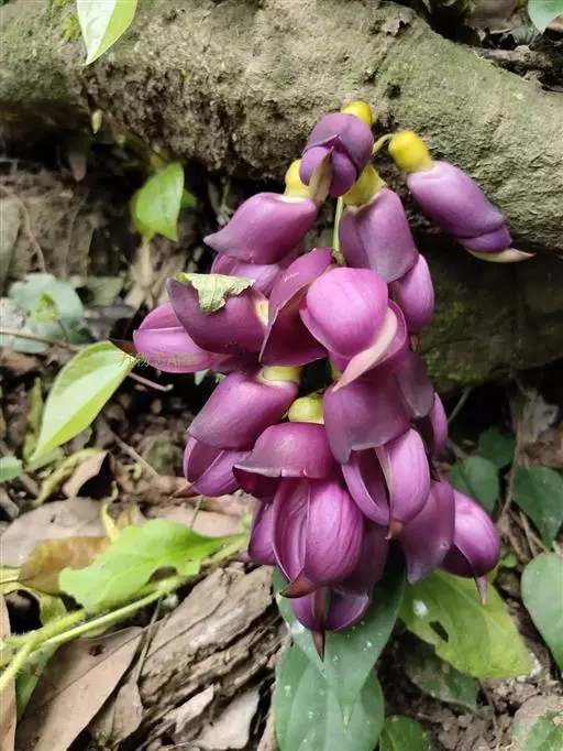 白花油麻藤(Mucuna birdwoodiana Tutcher),蝶形花科黎豆属,又名禾雀花、常绿木质大型藤本。该种生长迅速,蔓茎粗壮,叶繁荫浓,茎长可达30米以上,其生命力顽强,能盘树缠绕,越冠飞枝,攀石穿缝。其花序悬挂于悠长盘曲的老茎上,吊挂成串,每串二、三十朵,串串下垂。酷似无数白中带翠,如玉温润的小鸟栖息在枝头。