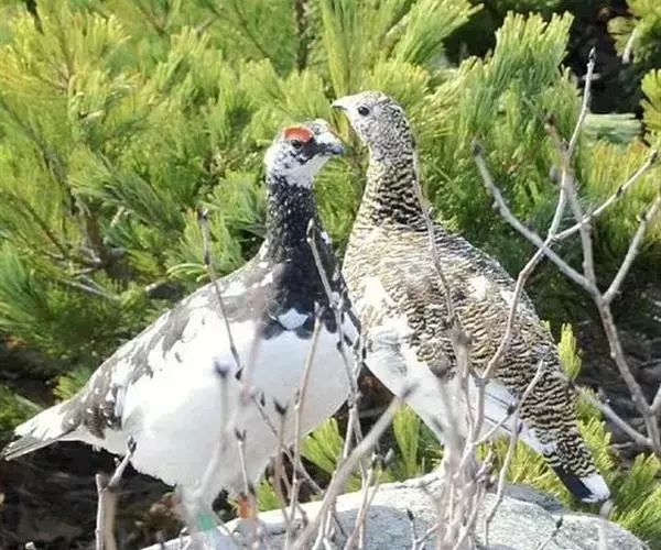 岩雷鸟(学名:Lagopus muta):共有25个亚种。雄鸟体长为38厘米,体重380克;雌鸟体长36厘米,体重450克。嘴较平而弱,爪的前端带有黑色。它的羽色与柳雷鸟很相近,只是夏季的羽色比柳雷鸟浅淡一些,呈皮黄灰色;冬季时,从嘴角到眼睛后面有一条宽的黑纹。眼睛内的虹膜褐色;嘴、爪都是黑色。