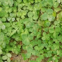 白车轴草,豆科车轴草属的多年生草本植物,茎贴地匍匐;叶柄直立,小叶心形,边缘具细齿,叶脉明显,…
