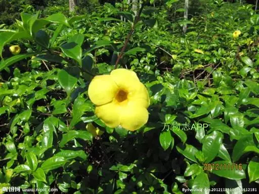 黄蝉属,夹竹桃科,约15种,分布于热带美洲,中国引入栽培的有黄蝉A. neriifolia Hoo…