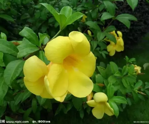 软枝黄蝉花橙黄色,大而美丽,供观赏用。