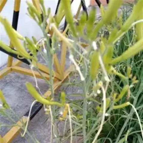 小黄花菜 多年生草本,具很短的根状茎;根常多少肉质, 根一般较细,绳索状粗1.5-3 (-4 )毫米,不膨大。叶长 20-60 厘米,宽3-14毫米。叶基生,长20-50厘米。