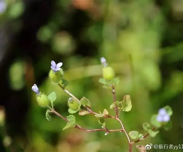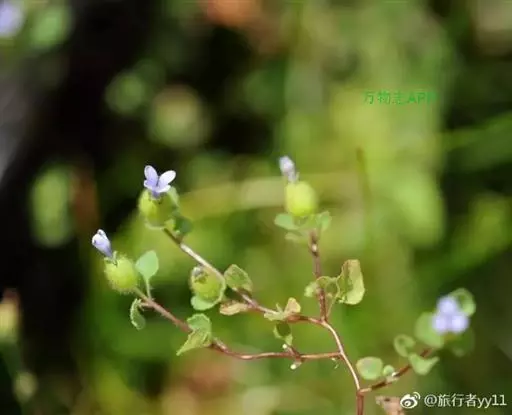 一年生草本,高达80厘米。茎近木质,稀疏分枝,主茎明显,疏被柔毛。叶互生,稀疏,唯花下3或4枚聚集,呈轮生状;叶片菱形、卵状宽菱形或近正圆状菱形,长5-15毫米,宽3-10毫米,全缘或有不明显的钝齿,两面生柔毛,顶端钝,基部圆形或楔形;柄细,长2-6毫米。花通常单生于茎和分枝顶端,花梗长2-5毫米,纤细,被毛;花萼花期坛状,花后下部显著膨大,长8-12毫米,外面密生锈色柔毛,裂片5,披针状三角形,为萼筒长的1/4-2/5,两面均生锈色柔毛;花冠淡蓝色,筒状钟形,约比花萼长1倍,外面无毛,内面喉部密生柔毛,裂片5,倒卵状矩圆形,约占花冠总长的1/3;子房圆锥状,略短于花萼,花柱伸达近花冠喉部。蒴果卵圆状,成熟后超出花萼,顶端5裂。种子棕红色,椭圆状,两端钝,长约0.5毫米,宽约0.2毫米。花期8-9月 。