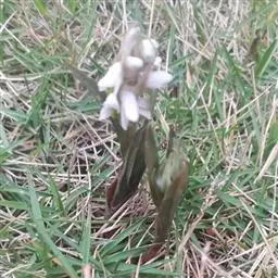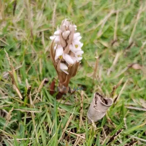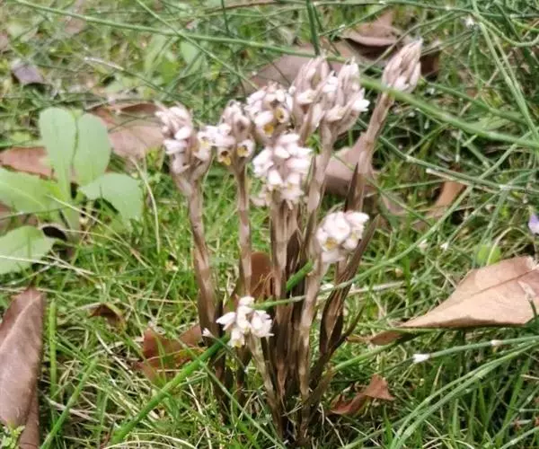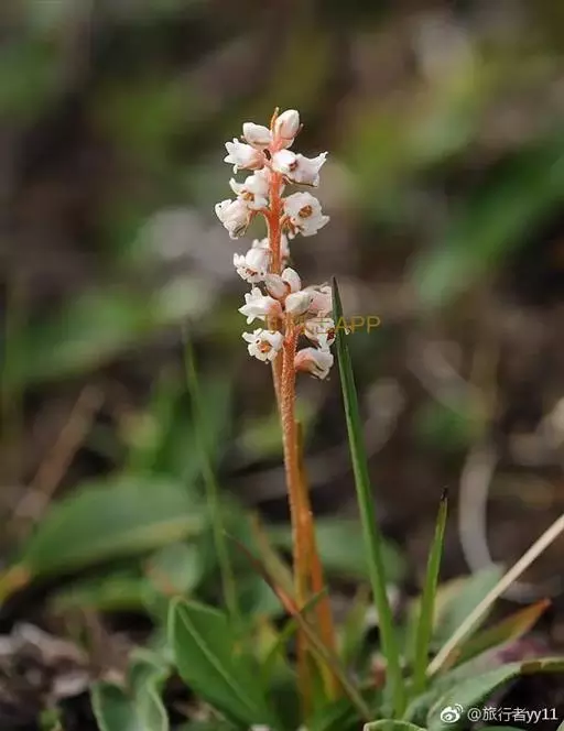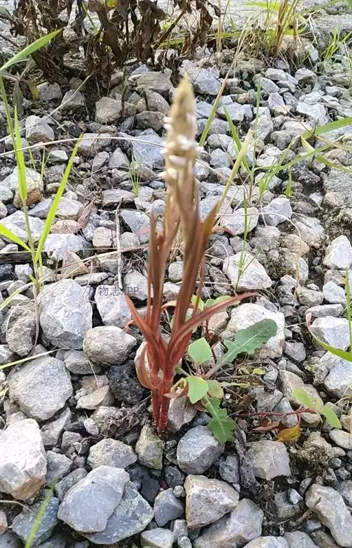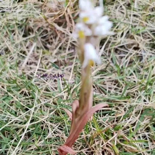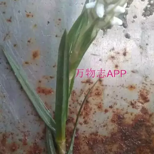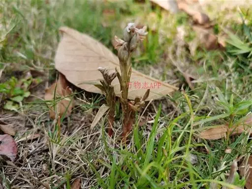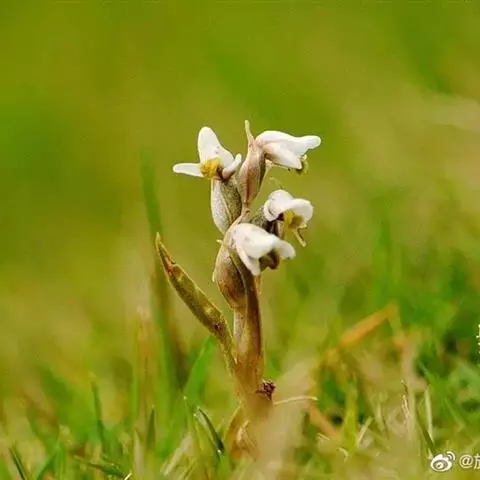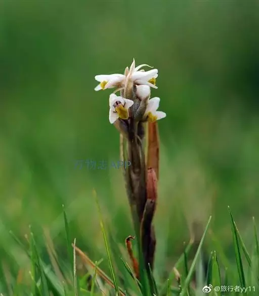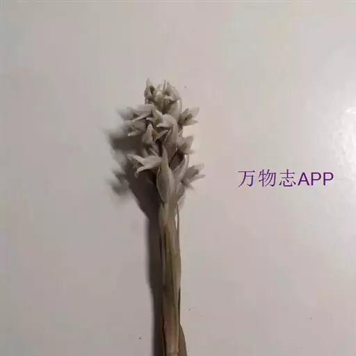总状花序几乎无花序梗,具几朵至20余朵密生的花,长2-5厘米,花序轴无毛或有毛;花苞片卵状披针形,红褐色,长8-12毫米,先端长渐尖,长于花,背面无毛或有毛;子房椭圆状圆柱形,扭转,无毛或有毛,连花梗长5-6毫米;花小,白色或黄白色;萼片背面无毛或有毛;中萼片狭卵状长圆形,凹陷,长4-5.5毫米,宽2-2.5毫米,先端钝,具1脉,与花瓣粘合呈兜状;侧萼片偏斜的长圆形,长4-5毫米,宽1.8-2毫米,先端急尖,具1脉。