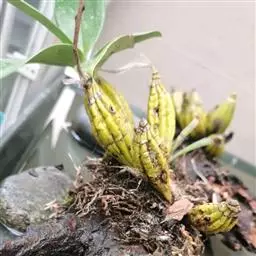 花瓣歪斜,半卵形或近镰状,与中萼片等长,宽1.5-1.8毫米,先端钝,具1脉,无毛;唇瓣肉质或较薄,舟状,淡黄色或黄色,基部凹陷呈囊状,其内面两侧各具1枚近三角形的胼胝体,中部收狭成长约0.5毫米、中央具沟痕的短爪,前部稍扩大,横椭圆形,长2毫米,宽约1.4毫米,顶端圆钝,稍凹陷或具稍微突起。