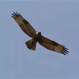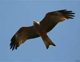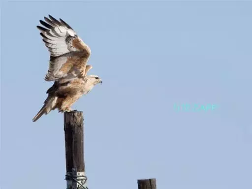 棕尾鵟(学名:Buteo rufinus):是鹰科鵟属的中大型猛禽,体长50-65厘米,体重1280克。成鸟头、颈棕褐色,上体褐色;第2-5枚初级飞羽外翈具横斑;下体棕白色;尾部棕褐色,与其他种类的鵟不同。飞行时,翅上举呈“V”形,翼尖黑色。