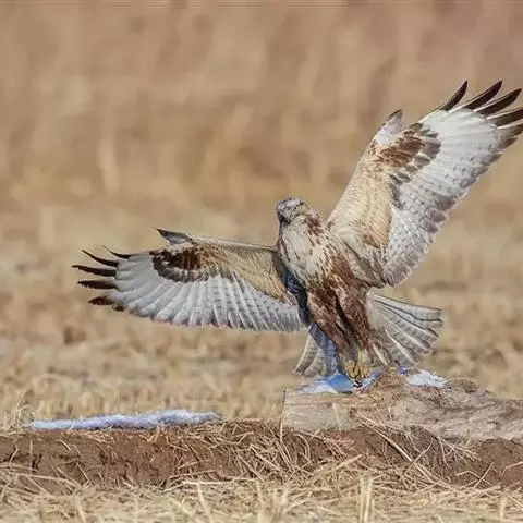 棕尾鵟是一种喜欢干燥环境的荒原猛禽,栖息于荒漠、半荒漠、草原、无树的平原和山地平原,垂直分布的高度可达海拔2000-4000米的高原地区,冬季有时也到农田地区活动,但较少活动于森林地带,常单独或成群活动在开阔、多石而又干燥的不毛之地。平时不善于鸣叫,行动显得迟缓而笨重,常站立在地上、岩石上、电线杆上或地面的高处和石头上,偶尔也站立在树上。喜欢在空中成圆圈状翱翔和盘旋,两翅上举成“V”字形,有时也在空中逆风不动,好像悬浮在空中。