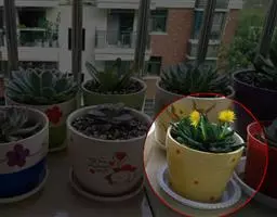 荒玉为番杏科生石花属,原产南非。株体呈白粉色,表面布满凹凸纹路,凹陷处为红褐色,每年秋季开黄花。