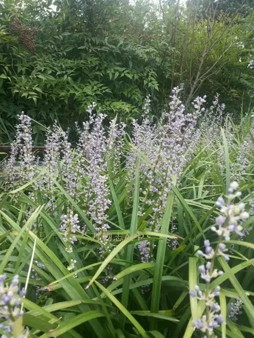 阔叶山麦冬(学名:Liriope muscari (Decne.) L.H.Bailey)是百合科山麦冬属植物。根细长,分枝多,有时局部膨大成纺锤形的小块根,小块根长达3.5厘米,宽约7-8毫米,肉质;根状茎短,木质。叶密集成丛,革质,长25-65厘米,宽1-3.5厘米。花葶通常长于叶,长45-100厘米。种子球形,直径6-7毫米,初期绿色,成熟时变黑紫色。花期7-8月,果期9-11月。
