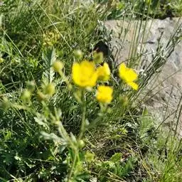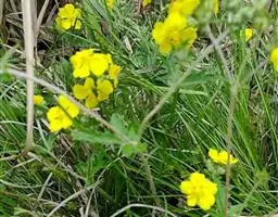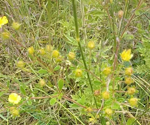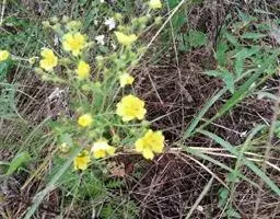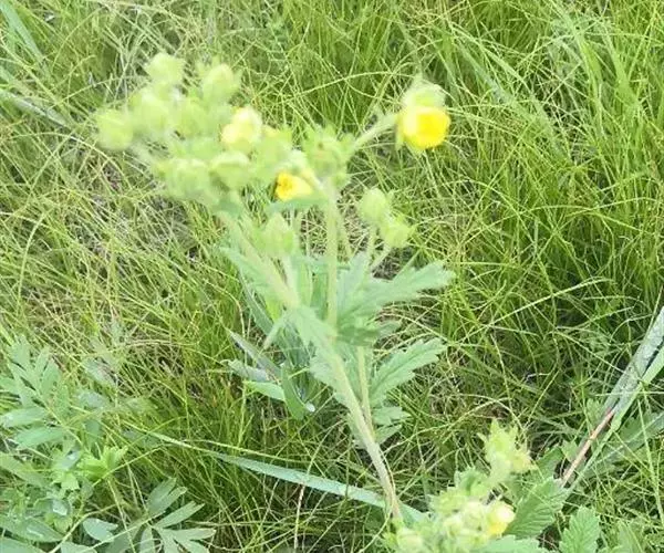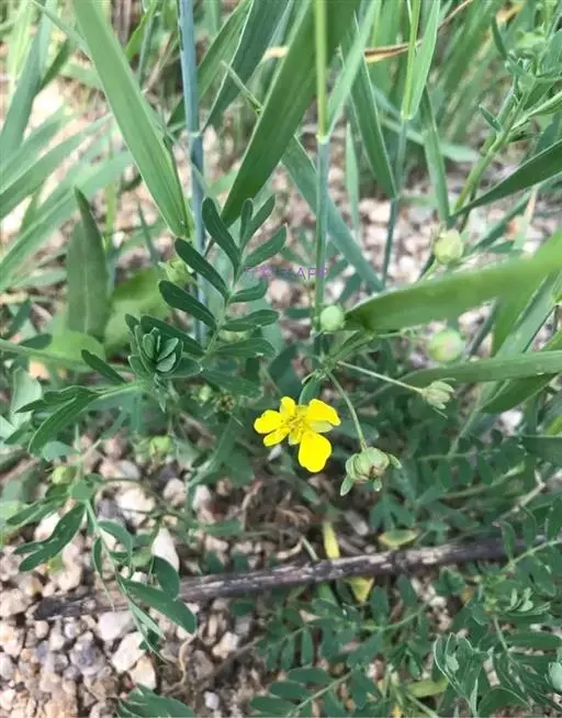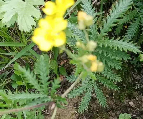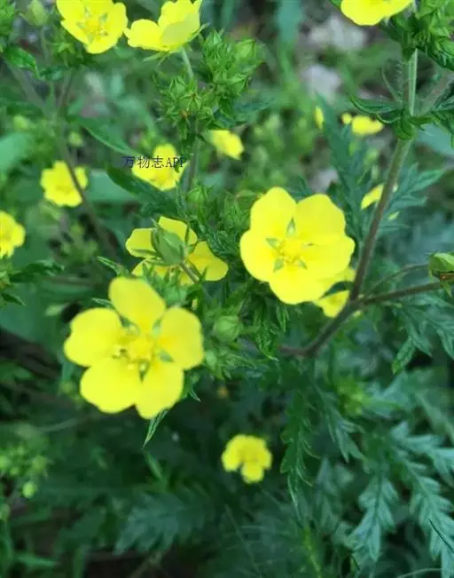 委陵菜(学名:Potentilla chinensis Ser.):多年生草本。根粗壮,圆柱形,稍木质化。花茎直立或上升,高20-70厘米,叶为羽状复叶,有小叶茎生叶托叶草质,绿色,边缘锐裂。伞房状聚伞花序,萼片三角卵形,花瓣黄色,宽倒卵形,顶端微凹,比萼片稍长;花柱近顶生。瘦果卵球形,深褐色,有明显皱纹。花果期4-10月。
