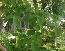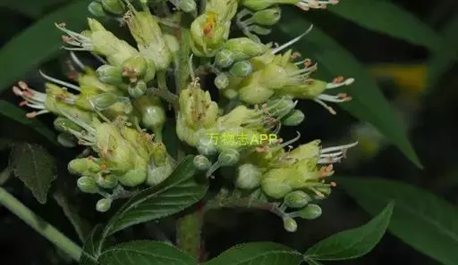 落叶乔木,高6-12米,宽度同高度几等,圆形树冠。树皮灰色,皱裂、小块裂或鳞片状裂。小枝粗壮,枝、叶搓碎后有臭昧。顶芽比侧芽大,有褐色鳞片包裹。直根发达。掌状复叶对生,5小叶,也有7小叶,小叶椭圆形或卵形,长7.5-15厘米,宽2.5-5.5厘米,具细锯齿,叶柄长7.5-15厘米。圆锥花序顶生,长10-17.5厘米,花萼橙色,花瓣黄绿色,花期4-5月。新果倒宽卵形,长2.5-5厘米,散生小刺,10月成熟,种子有毒。