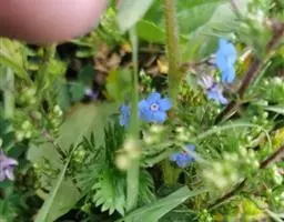 倒提壶(学名:Cynoglossum amabile Stapf et Drumm.):紫草科,琉璃草属多年生草本植物,高可达60厘米。茎密生贴伏短柔毛。基生叶,长圆状披针形或披针形,茎生叶长圆形或披针形,无柄,花序锐角分枝,紧密,向上直伸,圆锥状,无苞片;裂片卵形或长圆形,花冠通常蓝色,稀白色,裂片圆形,花柱线状圆柱形,小坚果卵形,5-9月花果期。