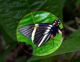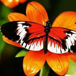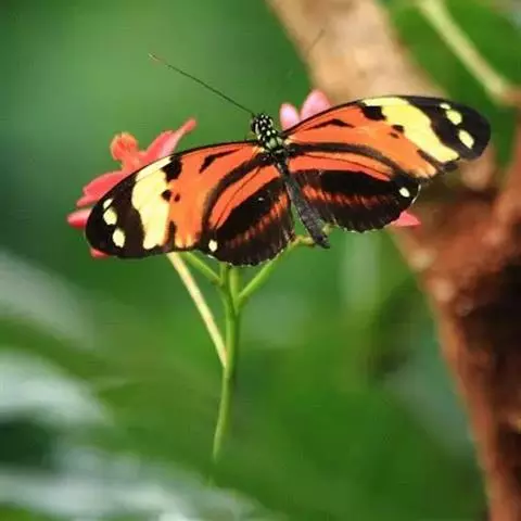 黑脉金斑蝶:翅阔8.6-12.4厘米。雄蝶较雌蝶为大。成年蝶颜色鲜艳,翅膀上有显眼的橙色及黑色斑纹…