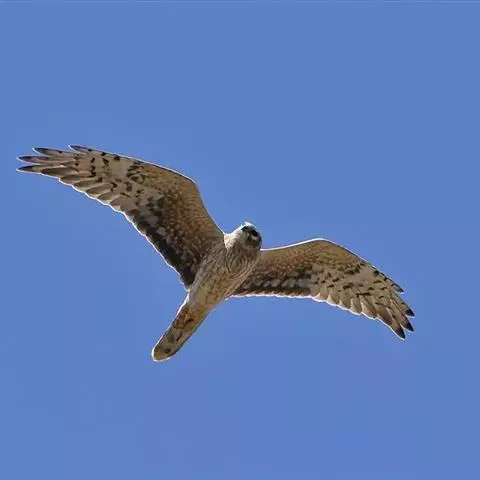 白腹鹞中型猛禽,体长50~60厘米。雄鸟头顶至上背白色,具宽阔的黑褐色纵纹。上体黑褐色,…