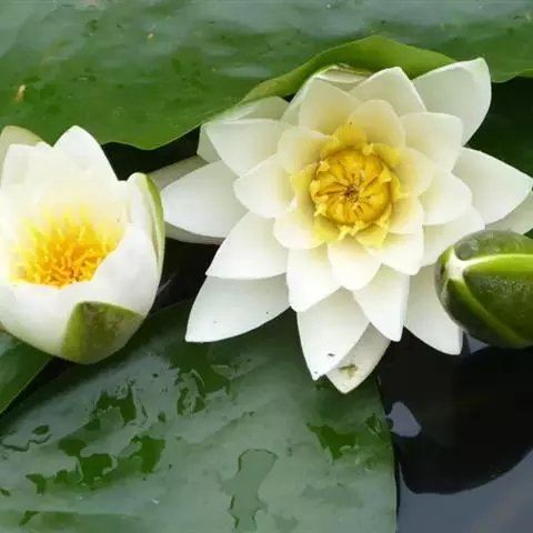 白睡莲(学名:Nymphaea alba L.):又名欧洲白睡莲,是一种源自于欧洲的睡莲属植物。属多年生草本植物,叶近圆形、纸质,基部有深弯缺、裂片尖锐、近平行或开展,全缘或波状。茎为匍匐根茎。花梗与叶柄长度相近;萼片披针形脱落或在花期后腐烂。花瓣20至25片,白色、卵状矩圆形,外轮略长于萼片。花托为圆柱形。果实为浆果,形状扁平至半球形,长2.5到3厘米。种子呈椭圆形、长约2到3厘米。生于池沼中。花期6-8月,果期8-10月。