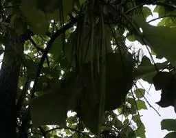花瓣及花萼均为白色,花药亮黄色,雄蕊黄色。花朵似星状,花径13-14厘米,有很淡的芳香。花瓣数及花萼数各为17-20及4。花梗绿色,有些带古铜色条纹,光滑无毛。幼叶淡紫铜色,背面红色;成叶橄榄绿色,叶背古铜色或淡紫色。叶心形,叶基阔开裂。叶柄铜紫色,光滑无毛。叶径大小15 ×18厘米,叶展75厘米。