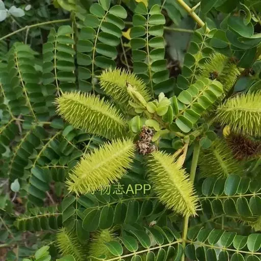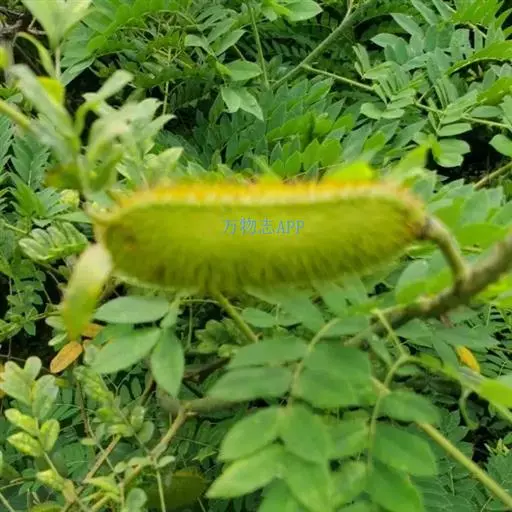 荚果长圆形,长7.5-13厘米,宽4-4.5厘米,先端圆钝而有喙,喙长5-25毫米,果瓣表面密生针状刺,有种子4-8颗;种子椭圆形与莲子相仿,一侧稍洼,有环状纹,长约18毫米;宽约10毫米,种子在狭的一端。花期4-5月;果期7月。