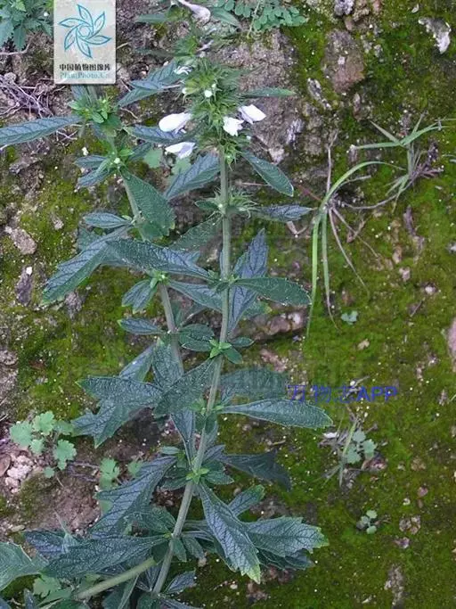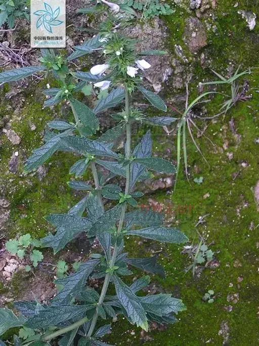 茎直立,高60-100厘米,单一,通常在茎的上部成对地分枝,分枝或短或长,均能育,茎及分枝钝四棱形,明显具槽,密被贴生倒向的微柔毛,在节间上尤为密集,上部具花序。