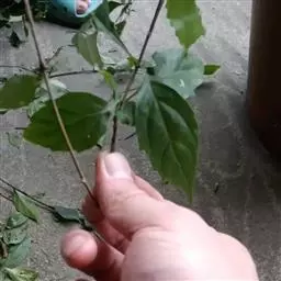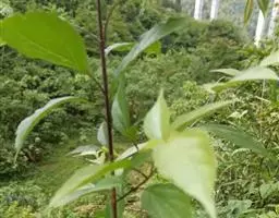 叶片变异很大,最下部的叶通常脱落,近茎基部叶轮廓为卵圆形,长6-7厘米,宽4-5厘米,3裂,分裂达中部,裂片几相等,边缘疏生粗锯齿状牙齿,先端锐尖,基部宽楔形,近革质,上面暗绿色,稍密被糙伏小硬毛,粗糙,叶脉下陷,具皱纹,下面淡绿色,主沿脉上有贴生的小硬毛,其间散布淡黄色腺点,叶脉明显凸起,叶柄长1-2厘米,多少具狭翅,腹面具槽,背面圆形,密被小硬毛;茎中部的叶通常不裂,轮廓为长圆形,边缘疏生4-5对齿,最下方的一对齿多少呈半裂片状,其余均为锯齿状牙齿,叶柄较短,长在1厘米以下;花序上的苞叶最小,近于线状长圆形,长3厘米,宽1厘米,全缘,或于先端疏生1-2齿,无柄。