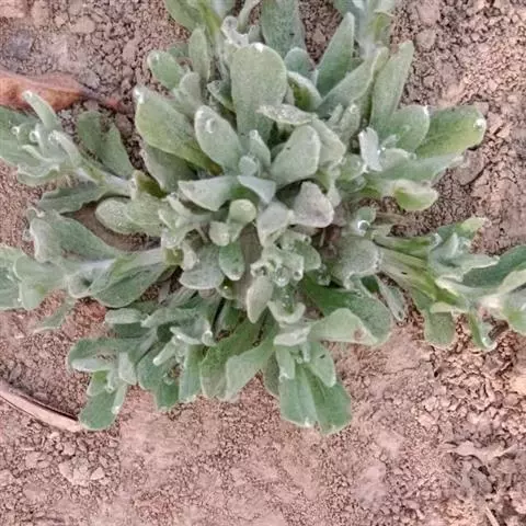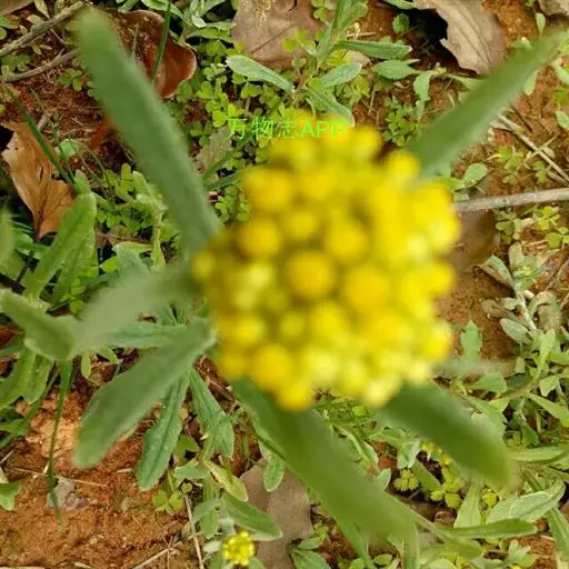 一年生草本。茎直立或基部发出的枝下部斜升,高10-40厘米或更高,基部径约3毫米,上部不分枝,有沟纹,被白色厚棉毛,节间长8-20毫米,上部节间罕有达5厘米。叶无柄,匙状倒披针形或倒卵状匙形互生,长5-7厘米,宽11-14毫米,上部叶长15-20毫米,宽2-5毫米,基部渐狭,稍下延,顶端圆,具刺尖头,两面被白色棉毛,上面常较薄,叶脉1条,在下面不明显。头状花序较多或较少数,径2-3毫米,近无柄,在枝顶密集成伞房花序,花黄色至淡黄色;总苞钟形,径约2-3毫米;总苞片2-3层,金黄色或柠檬黄色,膜质,有光泽,外层倒卵形或匙状倒卵形,背面基部被棉毛,顶端圆,基部渐狭,长约2毫米,内层长匙形,背面通常无毛,顶端钝,长2.5-3毫米;花托中央稍凹入,无毛。雌花多数,花冠细管状,长约2毫米,花冠顶端扩大,3齿裂,裂片无毛。两性花较少,管状,长约3毫米,向上渐扩大,檐部5浅裂,裂片三角状渐尖,无毛。瘦果倒卵形或倒卵状圆柱形,长约0.5毫米,有乳头状突起。冠毛粗糙,污白色,易脱落,长约1.5毫米,基部联合成2束。花期1-4月,8-11月。