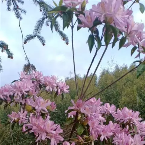 满山红是杜鹃花科杜鹃属的落叶灌木。珠高可达1-2米,枝条轮生;叶片轮生枝端,近革质或纸质,…