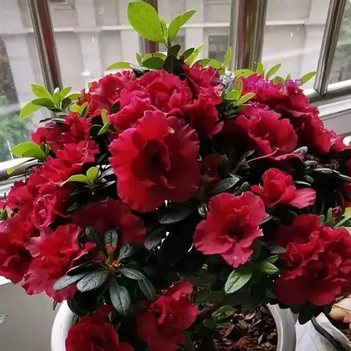 西洋杜鹃是杜鹃花目,杜鹃花科常绿灌木,根系木质纤细,植株低矮,枝杆紧密。叶互生,纸质,厚实,叶片集…