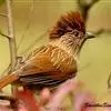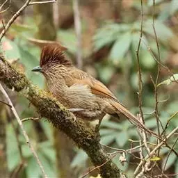 条纹噪鹛是画眉科、噪鹛属中型鸟类,体长28-32厘米。头具短的羽冠,上体栗褐色,飞羽外翻蓝灰色。…