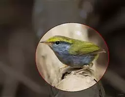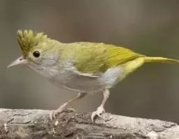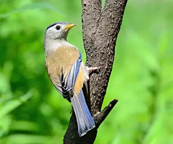 蓝翅希鹛雌鸟头顶灰白色,上体草黄色,下体赭褐色,白色眉纹不显而黑色眉纹醒目。其余与雄鸟相似。