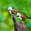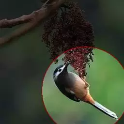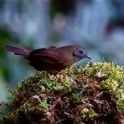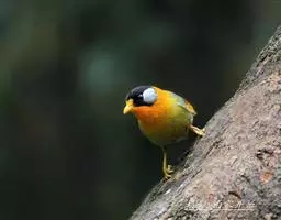 黑顶噪鹛:中型鸟类,体长24-26厘米。前额、脸、颏、喉黑色,头顶黑褐沾棕或深棕橄榄褐色,…