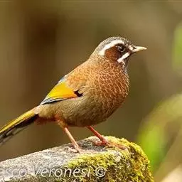 丽色噪鹛是红翅噪鹛的指名亚种。中型鸟类,体长23-28厘米。头顶灰橄榄褐色具粗著的黑色纵纹,头侧、…