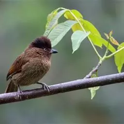 灰翅噪鹛中型鸟类,体长21~25厘米。额黑色,头顶黑或灰色,眼先、脸白色。上体橄榄褐至棕褐色,…
