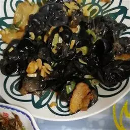 香拌木耳,以泡发木耳、蒜瓣为主料的菜品。