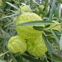 马利筋 多年生直立草本,灌木状,高达80厘米,全株有白色乳汁;茎淡灰色,无毛或有微毛。叶膜质,披针形至椭圆状披针形,长6-14厘米,宽1-4厘米,顶端短渐尖或急尖,基部楔形而下延至叶柄,无毛或在脉上有微毛;侧脉每边约8条;叶柄长0.5-1厘米。聚伞花序顶生或腋生,着花10-20朵;花萼裂片披针形,被柔毛;花冠紫红色,裂片长圆形,长5毫米,宽3毫米,反折;副花冠生于合蕊冠上,5裂,黄色,匙形,有柄,内有舌状片;花粉块长圆形,下垂,着粉腺紫红色。蓇葖披针形,长6-10厘米,直径1-1.5厘米,两端渐尖;种子卵圆形,长约6毫米,宽3毫米,顶端具白色绢质种毛;种毛长2.5厘米。花期几乎全年,果期8-12月。