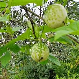 炮弹果,中药名。为夹竹桃科植物清明花Beaumontia grandiflora Wall.[Ec…