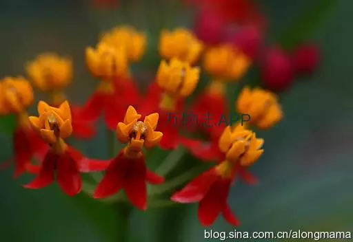 马利筋原产热带美洲地区,现广植于世界各热带及亚热带地区,在我国有160多年的栽培历史,清代《植物名实图考》(1848年)就有记载。花橙黄或红色,花心紫红色,花朵小巧玲珑,像一群在舞蹈的精灵,美丽的花儿常常招蜂引蝶,故英文名为Buttefly weed。马利筋的叶片是蝴蝶的幼虫喜爱的食粮,可作为引蝶植物加以利用。种子有银白色长绒毛,便于飞行散布,繁衍后代,因此只要栽培1株,即能自行繁殖无数幼株,甚至呈野生状态。