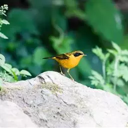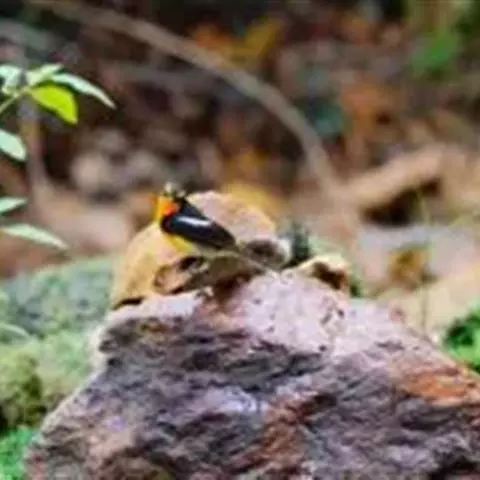 金色林鸲是鹟科、鸲属小型鸟类,体长12-15厘米。头顶至背黄橄榄绿色,眼先和头侧黑褐色,眉纹金橙黄色。…