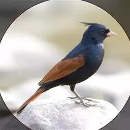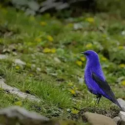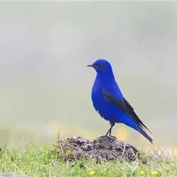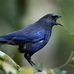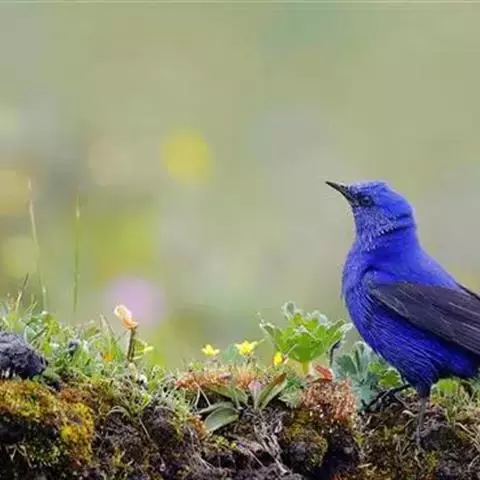 蓝大翅鸲是鹟科、大翅鸲属小型鸟类,体长19-21厘米。两翅尖长。雄鸟通体鲜紫蓝色具金属光泽。…