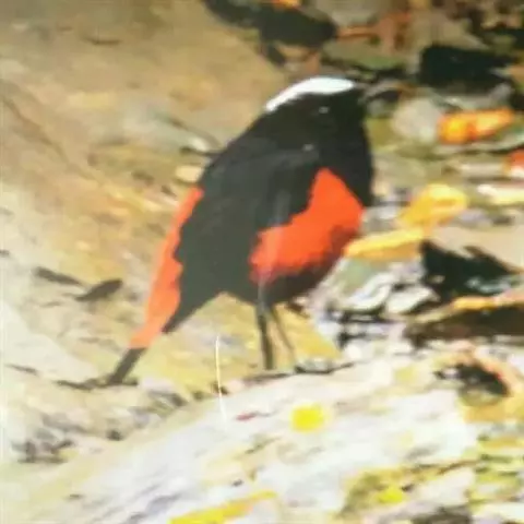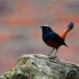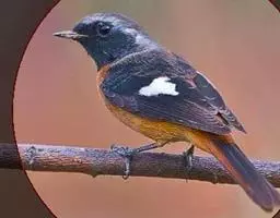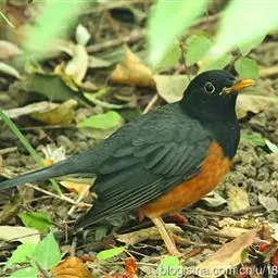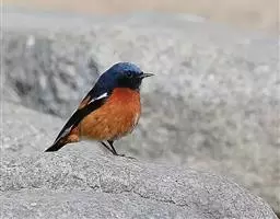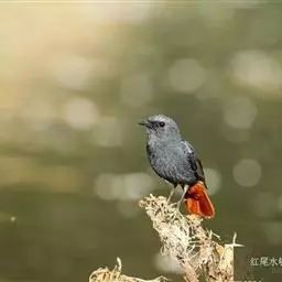 赭红尾鸲:小型鸟类,体长13-16厘米。雄鸟前额、头侧、颈侧、颏至胸概黑色,头顶和背灰色或黑色,…