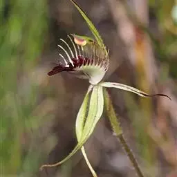 花瓣倒披针形或狭披针形,向基部收狭成狭线形,长1.8-2.6厘米,上部宽3-3.5毫米,先端渐尖;唇瓣与花瓣近等长,线形,上部1/4处3裂;侧裂片近线形,长4-5毫米,宽约1毫米;中裂片卵形至狭长圆形,长6-8毫米,宽3-5毫米,基部在两枚侧裂片之间具1枚肉质突起;肉质突起大小变化甚大,上面有时有疣状小突起;蕊柱细长,长1.8-2.5厘米,顶端略扩大,腹面有时有很狭的翅。