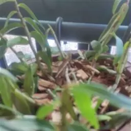 方法一 准备好兰盆及植料后,将兰株倒拿(根在上,叶在下)放于水龙头下以慢水冲洗,但水压切忌过强,以免伤兰根及叶子。用拇指和食指抓住兰头,小指抵住盆缘,用竹筷将根固定,当放入盆内时,尽量不要让根接触到盆壁。将豆粒大的混合石砾倒入盆底至三分之一处。然后倒入中粒植料至五分之四处,填实和尽量不要留下空间。将竹筷拔出,并摇实盆中植料。填实植料后,再用大粒植料埴入至距盆缘1.5厘米处。最后再倒入豆粒大植料,以将假鳞茎全部埋入土中为度,然后充分摇实。用压土工具轻压植料,并将表面弄平。种植完毕后,植料在盆中以中央稍高为好。