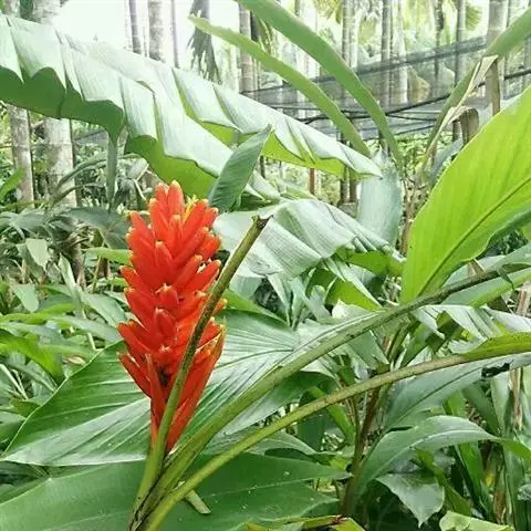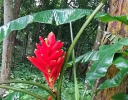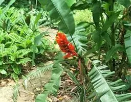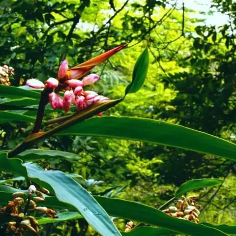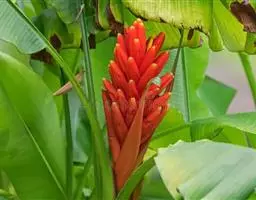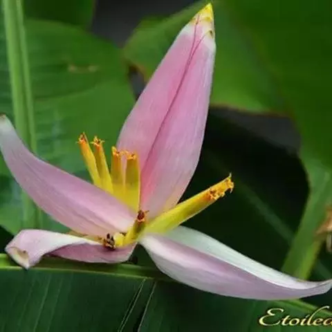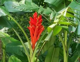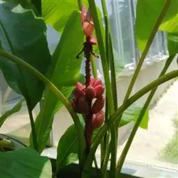 紫苞芭蕉形如一枝亭亭玉立、含苞待放的荷花,但却开在高高的芭蕉树上,这就是紫苞芭蕉。