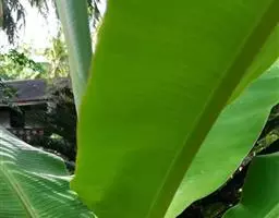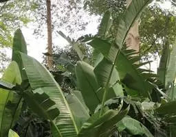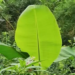 红蕉,假茎高1-2米。叶片长圆形,长1.8-2.2米,宽68-80厘米,叶面黄绿色,叶背淡黄绿色,…